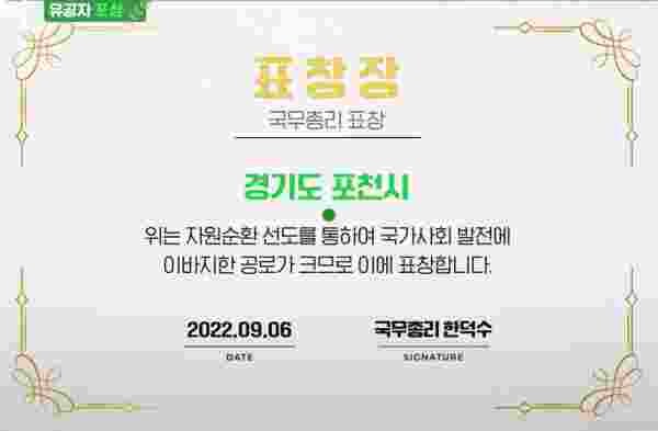 이번 표창은 제14회 자원순환의 날 행사에서 수상할 예정이었으나 태풍 ‘힌남노’의 영향으로 온라인으로 개최했다.