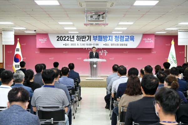 강수현 시장은“이번 교육을 통해 전 직원이 소통하고 체감할 수 있는 갑질 근절 청렴 문화 확산의 계기가 되길 바라며 지속적으로 반부패 청렴정책을 추진해 시민과 함께 도약하는 청렴 양주시가 되도록 최선을 다하겠다”고 밝혔다.
