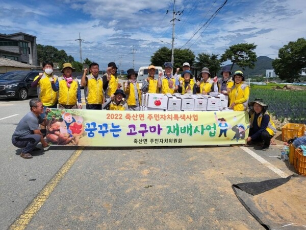 ‘꿈의 고구마 재배사업’은 죽산면 주민자치위원회 위원 모두가 참여해 고구마를 재배한 후 판매해 발생한 수익금 또는 물품을 지역사회보장협의체 등에 기부해 취약계층 가구를 돕는 연중 사업이다.
