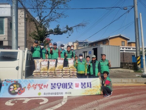 이날 죽산면 남·녀새마을협의회원 20여명은 관내 어르신들을 위해 백진주 쌀 10kg 36포를 구매해 죽산면 각 마을 노인정에 기부했다.