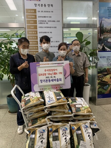장기본동 새마을회는 관내 주민을 위해 매년 명절마다 따뜻한 나눔의 손길을 이어가고 있으며 이날 기탁된 김포금쌀은 장기본동 행정복지센터 찾아가는 보건복지팀을 통해 복지사각지대 및 취약가구 20세대에 전달될 예정이다.