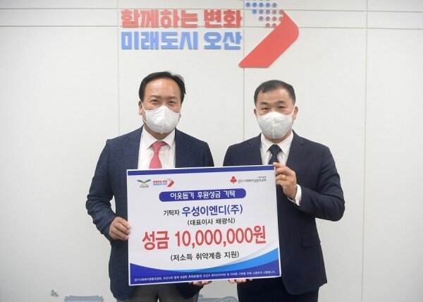 이에 이권재 오산시장은 “퇴직한 이후에도 지역사회에 남아 복지관 봉사활동 등을 하고 있는 강선규 전 과장과 이에 흔쾌히 응해준 우성이엔디에 감사드린다”며 “청년 영 케어러 사업과 도움이 필요한 저소득 가정을 위해 요긴하게 사용토록 하겠다”고 전했다.