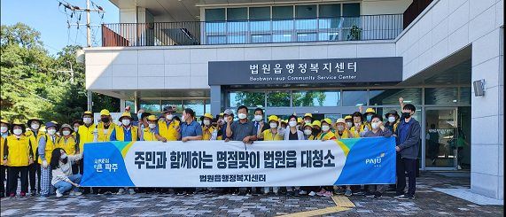 이날 대청소는 실버경찰대, 이장단, 부녀회, 노인일자리 등 다양한 단체들이 합심해 법원읍 일대 쓰레기 수거 및 불법 광고물 제거 등의 활동을 진행했다.