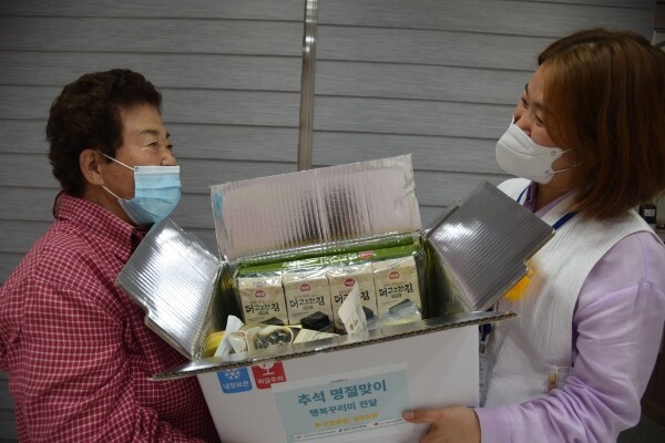 아울러 ‘행복꾸러미’는 코로나19 예방차원에서 안전하게 전달하기 위해 복지관 직원들이 어르신께 방역수칙을 준수해 전달했다.