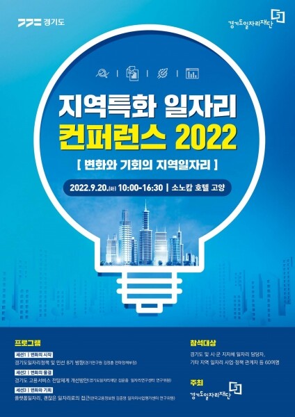 경기도일자리재단은 오는 20일 고양 소노캄호텔에서 ‘지역특화 일자리컨퍼런스 2022’를 개최한다고 13일 밝혔다.