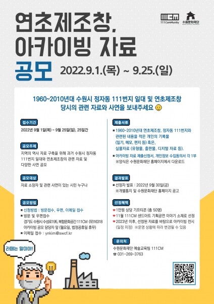 111CM 관계자는 “이번 공모를 통해 시민들과 함께 지역에 대한 관심과 이해를 이끌어내고자 한다”며 “시민들이 제공한 자료로 해당 지역에 대한 이야기와 추억이 111CM에서 다양한 문화예술 콘텐츠로 재탄생되길 기대한다”고 말했다.