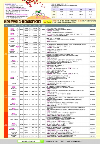 모아아카데미 가을학기는 10월 4일부터 12월 23일까지 12주간 운영되며 수강신청은 9월 16일부터 30일까지 부곡동청소년문화의집 홈페이지 또는 부곡동청소년문화의집을 방문해 선착순으로 접수 할 수 있다.