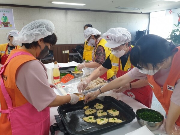 행사에 참여한 적십자 회원 및 다문화 봉사자들은 코로나 장기화와 최근 폭우피해의 영향으로 어느 해보다 어렵게 지낼 독거노인, 다문화 가정 등 관내 취약계층을 위해 삼색꼬치전, 동태전, 부추전, 완자전을 부치는 데 구슬땀을 흘렸다.