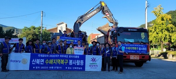 봉사활동을 마친 클럽회원들은 산북면행정복지센터를 방문해 한지연 산북면장에게 수해복구성금 100만원을 기탁했다.