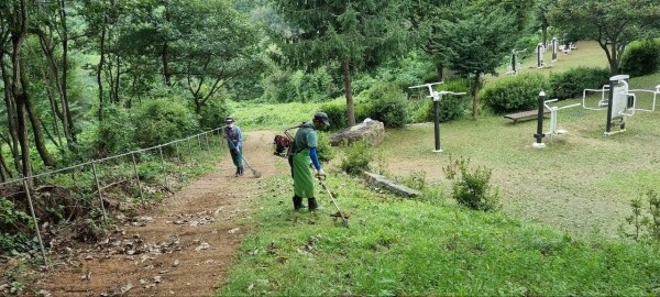 이날 작업은 갈오현공원 가래울약수터길 초입부터 약수터와 운동기구가 설치된 야외 체육시설을 포함해 실시했으며 무성해진 잡초를 제거하고 방치된 쓰레기를 수거해 주민들이 약수터와 체육시설 이용에 불편함이 없도록 세심하게 정비했다.