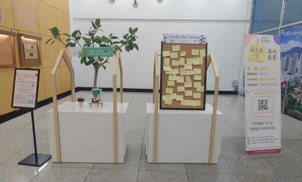 또한 중앙도서관 1층 로비에는 독서 후 자신의 의견을 적어 상시 게시하는 ‘포스트잇 독서토론’공간이 조성돼 있으며 9월에는 환경문제를 다루는 호프자런의 ‘나는 풍요로웠고 지구는 달라졌다’를 토론도서로 선정해 기후위기와 관련한 다양한 이야기가 게시되고 있다.