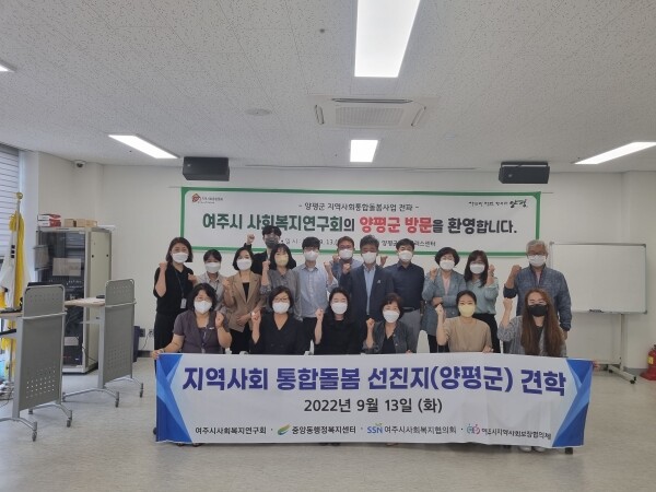 이날 벤치마킹은 여주시 중앙동행복지센터 복지팀을 포함한 여주시 사회복지행정공동연구회 회원 15명이 방문했으며 양평군 지역돌봄과는 양평군 행복플러스 4층 대회의실에서 양평군 지역사회 통합돌봄 추진사업 등에 대해 설명하는 시간을 가졌다.