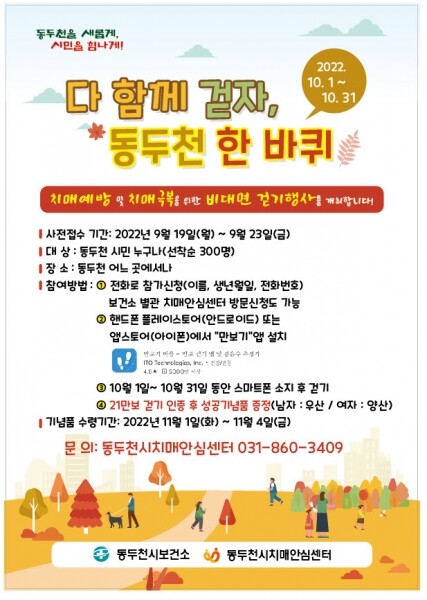 모집인원은 선착순 300명으로 동두천시민이면 누구나 참여할 수 있다.