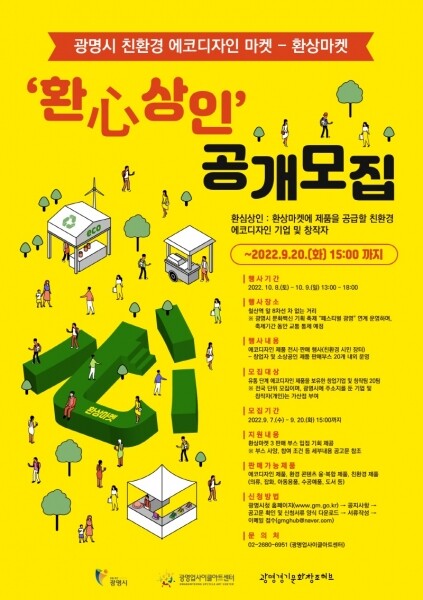 광명업사이클아트센터 관계자는 “작년 행사 이후, 많은 시민이 ‘환상마켓’ 덕분에 생소했던 에코디자인 제품의 매력을 발견했다며 뜨거운 호응과 격려를 보내주셨다”며 “올해도 그 열기를 이어갈 수 있도록 우수한 에코디자인 제품을 보유한 스타트업, 창작자 여러분의 많은 신청 바란다”고 전했다.