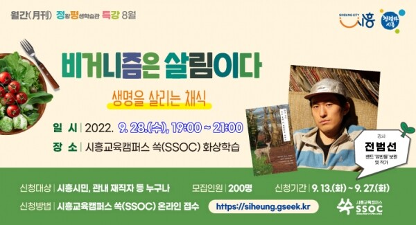 이번 특강은 ‘비거니즘은 살림이다-생명을 살리는 채식’이라는 주제로 전범선 작가와 함께 채식을 통해 지구와 생명을 살리는 방법에 대해 고민하는 시간이 마련된다.