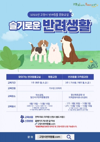 시 관계자는 "체계적인 반려동물 교육을 통해 반려인과 비반려인이 서로 배려하는 성숙한 반려동물 문화 정착를 정착할 것”이라고 말했다.