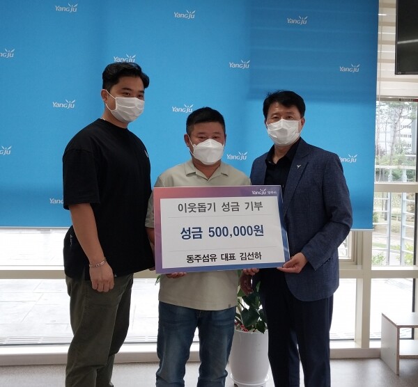 이창열 회천4동장은 “장기화된 코로나19로 모두가 힘든 상황에서도 따뜻한 나눔을 실천해 준 동주섬유 대표님께 감사하다”며 “성금은 지역사회 내 도움이 필요한 취약계층을 위해 잘 사용하겠다”고 전했다.