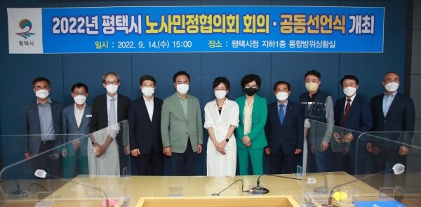 그밖에도 2023년 지역노사민정 협력활성화사업으로 4개 세부사업을 의결했으며 “민생 위기극복을 위한 2022년 평택시 노사민정 공동선언식을 갖고 지역경제 활성화와 민생경제 위기 조기 극복을 위해 상호 협력할 것”을 다짐했다.