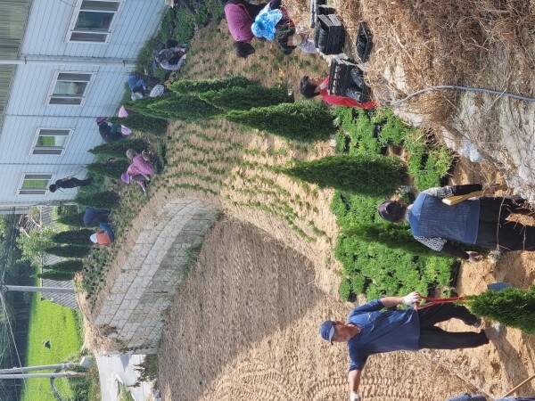 이날 도리리 마을자치회원과 마을 주민 25명이 모여 도리리 마을회관 주변을 정원처럼 가꾸기 위해 에메랄드그린, 꽃잔디, 무궁화 등을 심었다.