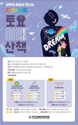 10월 프로그램 참가 희망자는 19일부터 22일까지 경기도융합과학교육원 누리집을 통해 신청하면 되고 추첨을 통해 대상자를 선정한다.
