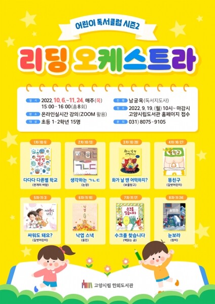 리딩 오케스트라는 초등학교 1~2학년 15명을 대상으로 진행하는 함께 책을 읽고 생각을 나누는 독서체험 교육이다.