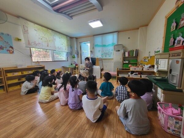 이 프로그램은 4월 중순 코로나19 사회적 거리두기가 해제된 후 관내 어린이집 11개, 병설유치원 1개, 장애인주단기센터 및 노인보호센터 각각 1개씩 총 14개 기관의 300명을 대상으로 매주 책 읽어주기 활동을 진행하고 있다.