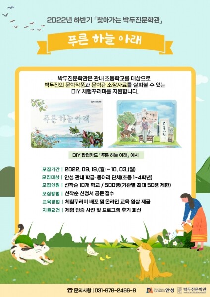 ‘찾아가는 박두진문학관’은 문학관 견학과 체험이 어려운 관내 초등학교 학생을 위해 교내에서 활동할 수 있는 체험꾸러미와 교육 영상을 지원하는 사업이다.