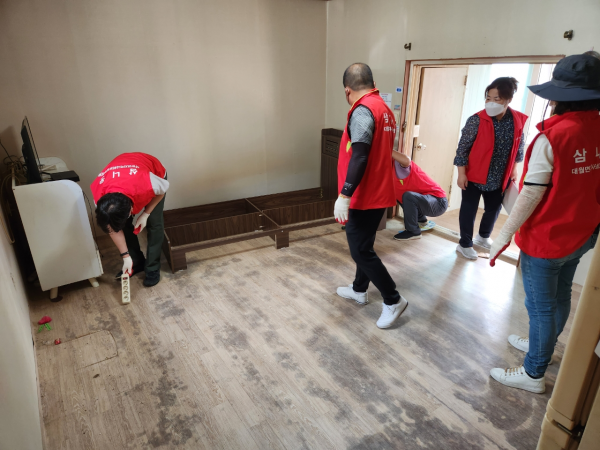 이번 집수리 대상 어르신 댁은 10년 이상 도배지 장판 교체를 하지 못해 곰팡이와 얼룩이 있어, 산유건설의 후원과 대월면지역사회보장협의체의 협력으로 장판 교체를 진행했다.
