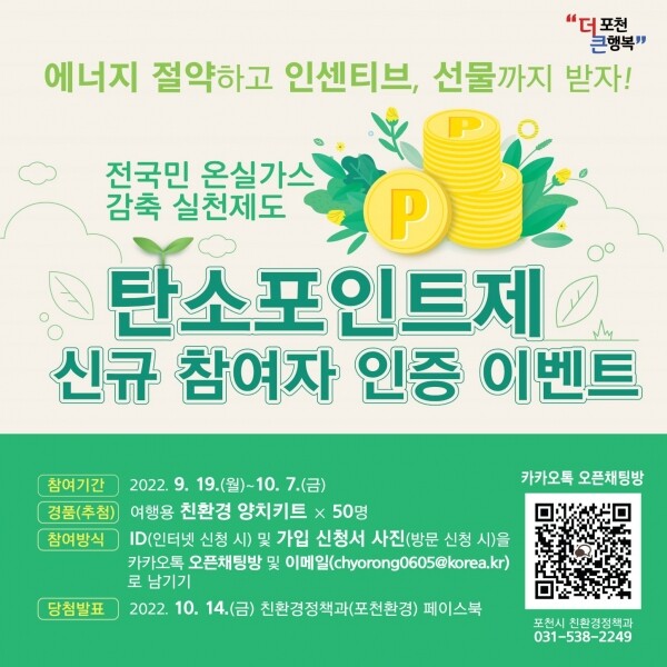 탄소포인트제 신규 참여 인증 이벤트 기간은 9월 19일부터 10월 7일까지다.
