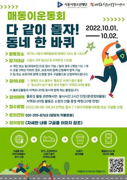 ‘매동이 운동회’는 일상에서 환경의 중요성을 되새기고 실천할 수 있는 환경 운동으로 플로깅 활동과 더불어 지역 모니터링을 함께 진행해‘청소년이 살기 좋은 매화동’을 만드는 마을 자치 활동이다.