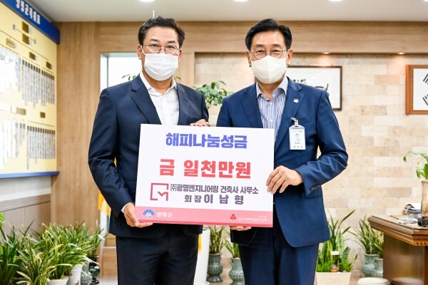 전진선 양평군수는 “기부해주신 해피나눔성금은 수해 피해를 입은 취약계층에게 도움이 될 수 있도록 유용하게 사용하겠다”며 “앞으로도 광명엔지니어링 건축사사무소의 건승을 기원하며 양평군에 지속적인 응원을 부탁드린다”고 전했다.