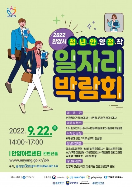 또 취업 관련 유관기관인 안양고용복지플러스센터·경기도일자리재단·안양과천상공회의소·관내 대학일자리센터가 참여해 다양한 취업 정책과 정보를 제공하고 맞춤형 상담도 진행할 예정이다.