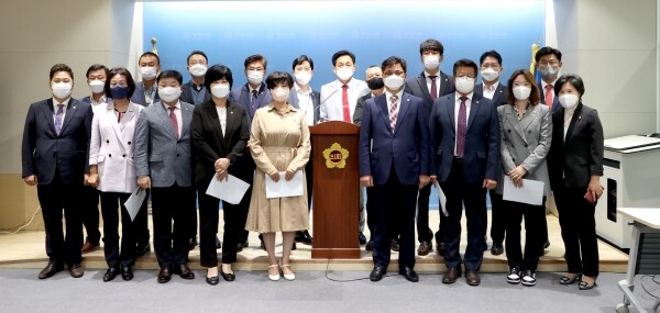 이날 기자회견은 교육행정위원회 이은주 의원을 주축으로 20명의 국민의힘 교섭단체 의원들이 함께 참석해 진행됐다.