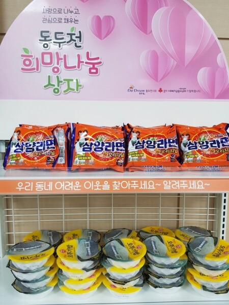 ‘희망나눔상자’는 일상생활에 어려움을 겪는 소외계층을 대상으로 식료품과 생필품을 무료로 제공함으로써 주민 생활안정과 생계비 부담을 완화하기 위해 2021년 4월에 동두천시 8개동 행정복지센터에 설치됐으며 2022년부터는 지역주민의 기부물품으로 운영되고 있다.