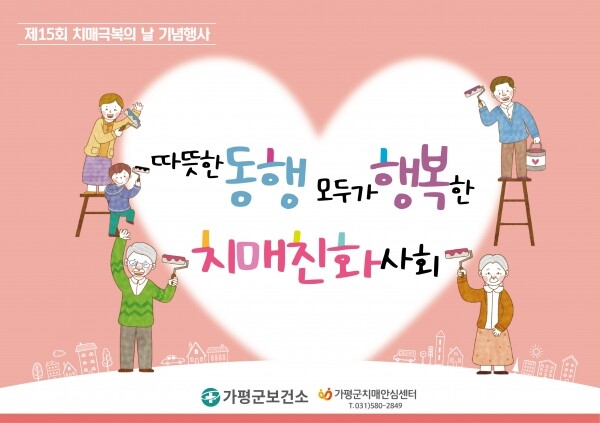 가평군보건소장은 “이번 치매극복 주간행사를 통해 치매에 대한 부정적인 인식을 개선시키고 치매 친화적 환경을 조성해 나가며 치매걱정 없는 행복한 가평군을 구현해 나가겠다”고 말했다.
