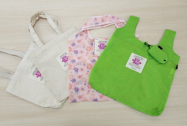 모아진 장바구니는 자원봉사자들의 캠페인 라벨 부착 후 재래시장과 지역상점에 비치되어 시민들과 만나게 된다.