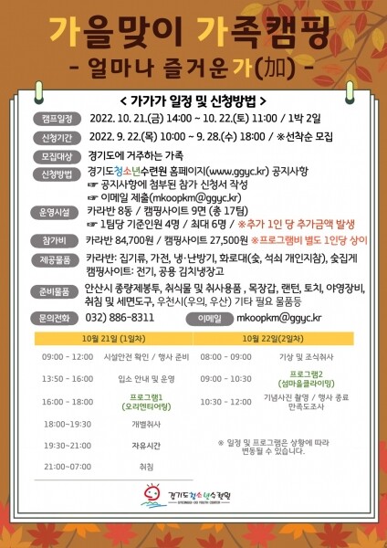 모집은 이달 22일 10시부터 28일 오후 6시까지며 자연 속에서 가족과 함께 추억을 만들고 싶은 도내 거주 가족은 누구나 신청할 수 있다.