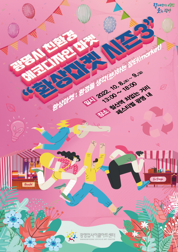 올해로 3년째를 맞은 환상마켓은 ‘환경을 생각하는 장터’라는 의미로 에코디자인 분야 스타트업 및 창작자, 소상공인의 판로지원을 목적으로 열리는 광명시의 대표적인 친환경 시민 장터 브랜드다.
