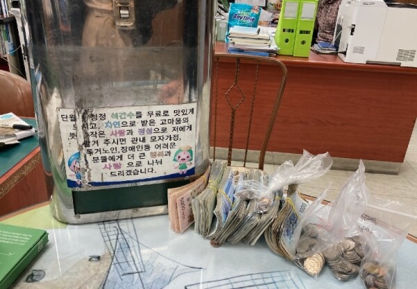 이러한 석간약수터에는 ‘불우이웃돕기 모금함’이 설치돼 있는데, 무료로 물을 뜨는 이용객들이 이웃돕기 성금을 기부하며 감사의 마음을 표현한다.