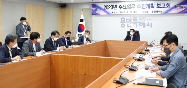 용인특례시는 22일 이 시장 주재로 '2023년 주요업무 보고'를 진행하고 각 실·국·사업소와 협업기관의 내년도 주요사업 계획을 검토하고 논의했다.