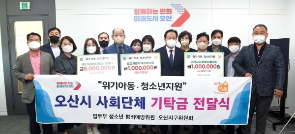 이에 이권재 오산시장은 “관내 위기 청소년들에게 지속적인 관심과 나눔의 손길을 보내주시는 법무부 청소년범죄예방위원 오산지구위원회에 감사드린다”며 “오산시 또한 복지사각지대에 놓인 청소년들을 적극적으로 발굴하고 지원할 수 있도록 노력하겠다”고 밝혔다.