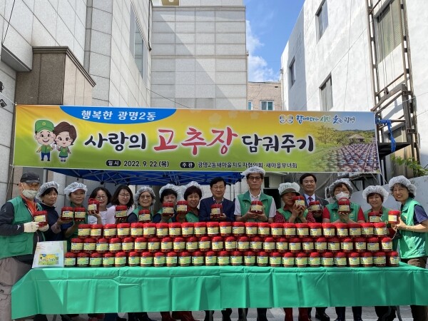 백은자 광명2동 새마을부녀회 회장은 “회원들의 정성이 듬뿍 들어간 고추장으로 취약계층들이 따뜻한 이웃의 정을 느끼고 행복하게 지내시길 바란다”고 말했다.