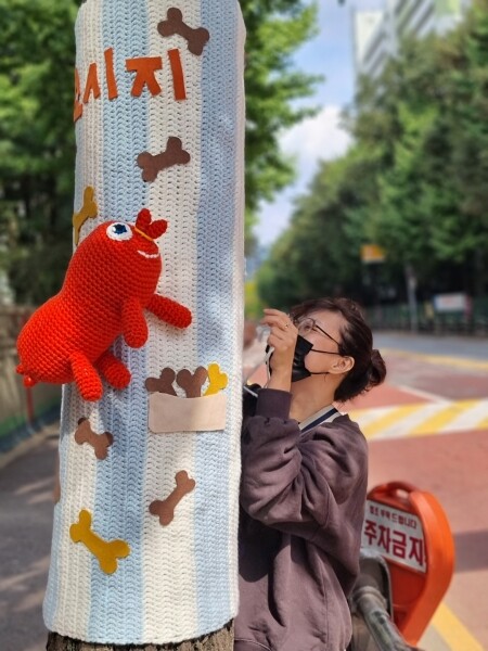이날 하안중학교 뜨개 동아리 학생들과, 연서·하일초등학교 학생들도 함께 참여해 하안중학교 앞 가로수에 뜨개옷을 직접 만들어 입혔다.