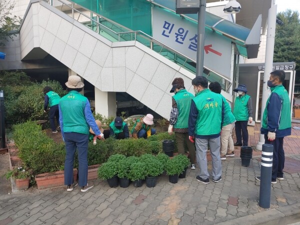 이번 가을꽃 식재에 참여한 새마을회 위원들은 장기동 행정복지센터를 방문하는 주민들이 다가오는 가을을 산뜻하게 맞이할 수 있도록 가을꽃 식재와 더불어 잡초제거까지 시행하며 장기동 환경정비에 앞장섰다.