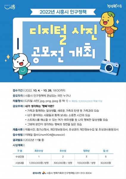 시 관계자는 “디지털 사진 공모전을 통해 시민들이 행복에 대해 다시 한 번 생각해보고 삶의 소중함과 즐거움을 돌아볼 수 있는 계기가 되길 바란다”고 말했다.