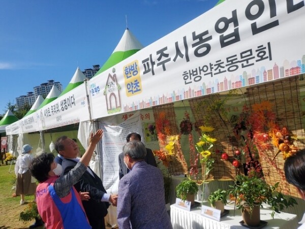 이날 부스에는 농업인대학 허준약초동문회 50여명이 참가해 파주시에서 재배되는 약용작물 종류와 약용작물 재배 시 선택 요령을 안내했다.