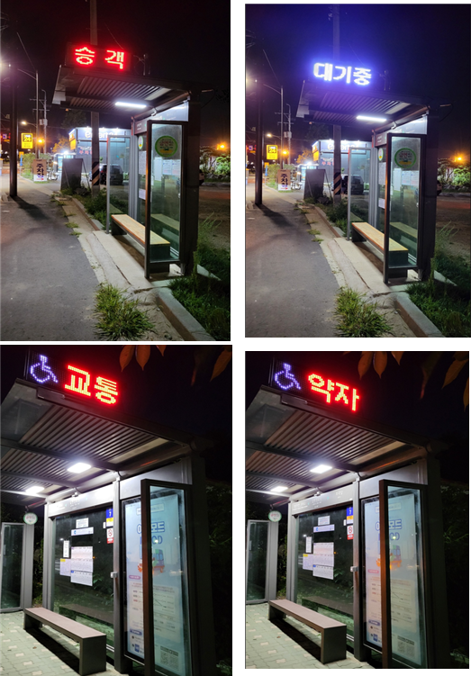 이 장치는 버스를 이용하는 시민이 버스승강장 안에 부착된 승차버튼을 누르면 외부 LED 전광판에 ‘승객 대기 중’알림문구가 표출되는 장치다.
