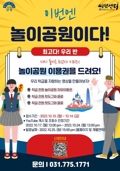 부상으로는 1등 학급 전체에 놀이공원 자유이용권이 지급되며 2, 3등 학급에는 전체 간식 및 음료를 지원할 예정이다.