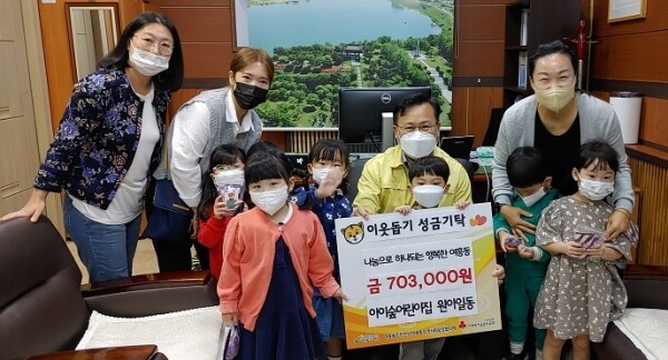 기탁금은 어린이집에서 시장놀이 행사를 개최해 각 가정에서 원생들이 기증한 문구류, 장난감 등 재활용이 가능한 물품들을 판매한 수익금으로 마련됐다.
