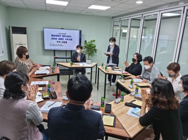 이번 간담회는 안동광 의정부시 부시장이 회의를 주재해 시장 공약사항인 발달장애인 활동서비스 프로그램, 최중증 장애인 가족 활동지원사 지원 정책 방향에 대해 논의를 했고 지역사회의 장애인 분야 복지 환경과 가용 자원에 대해서도 의견을 나누는 시간을 가졌다.